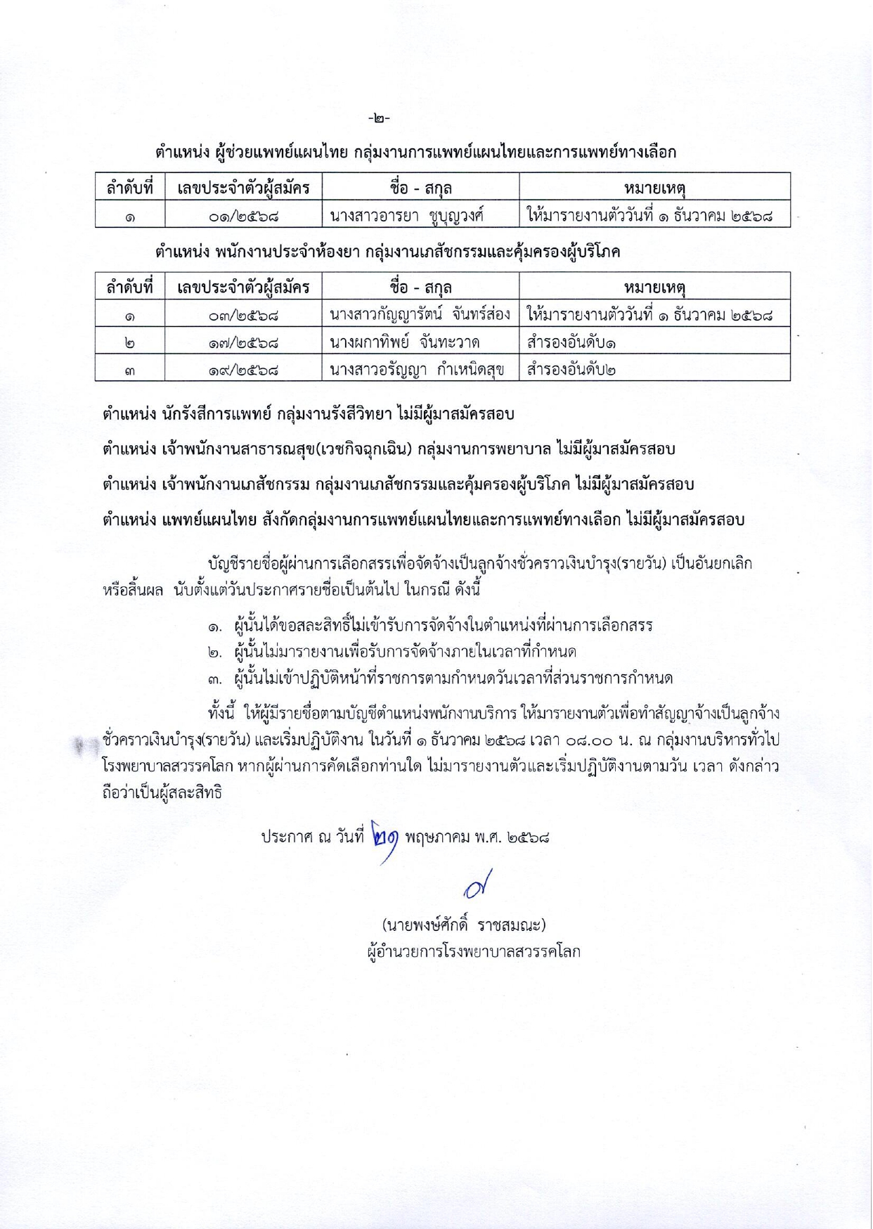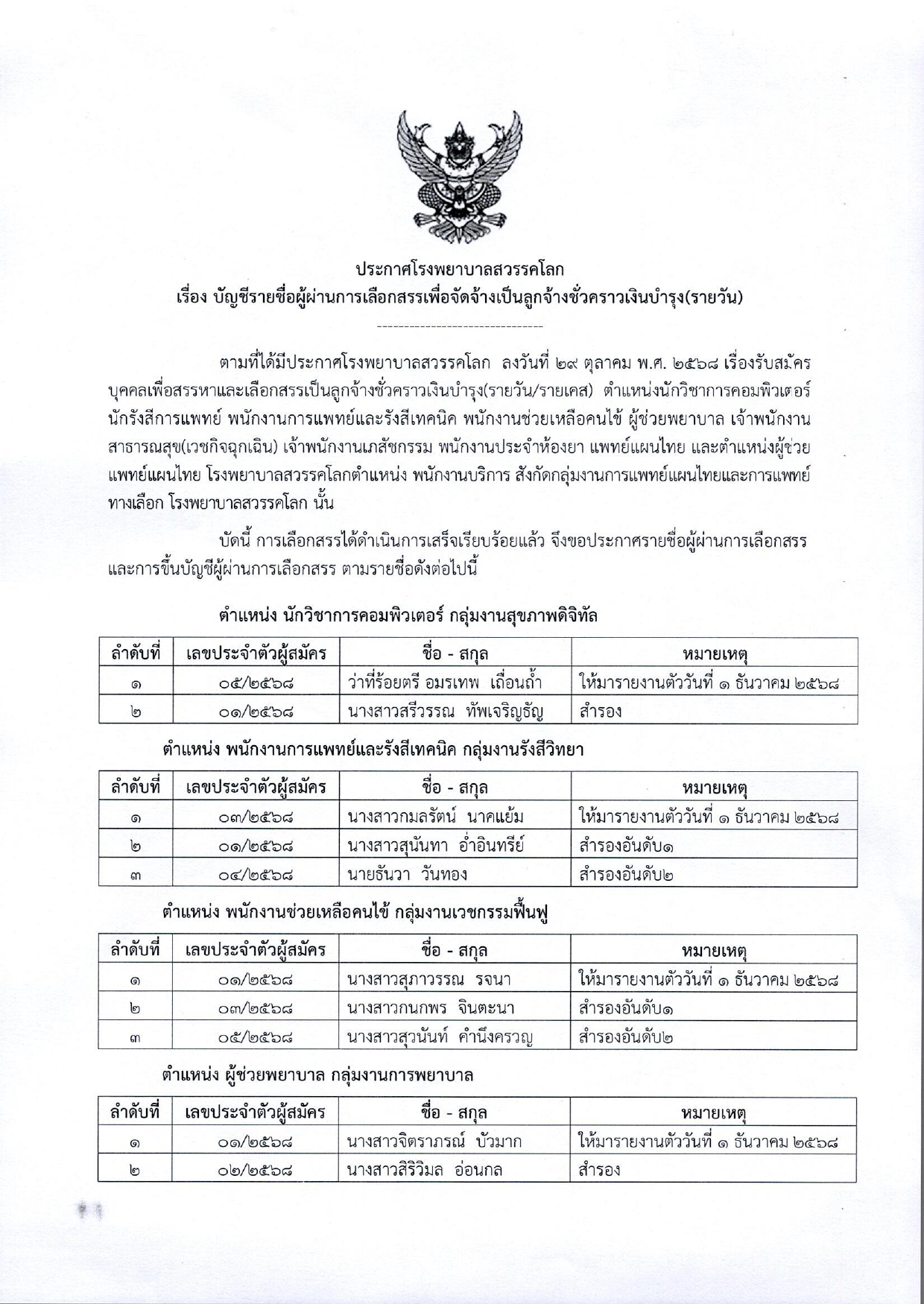 เรื่อง : ประกาศรายชื่อผู้การเลือกสรรเพื่อจัดจ้างเป็นลูกจ้างชั่วคราวเงินบำรุง(รายวัน)