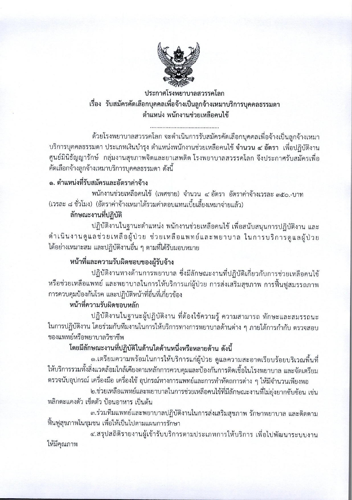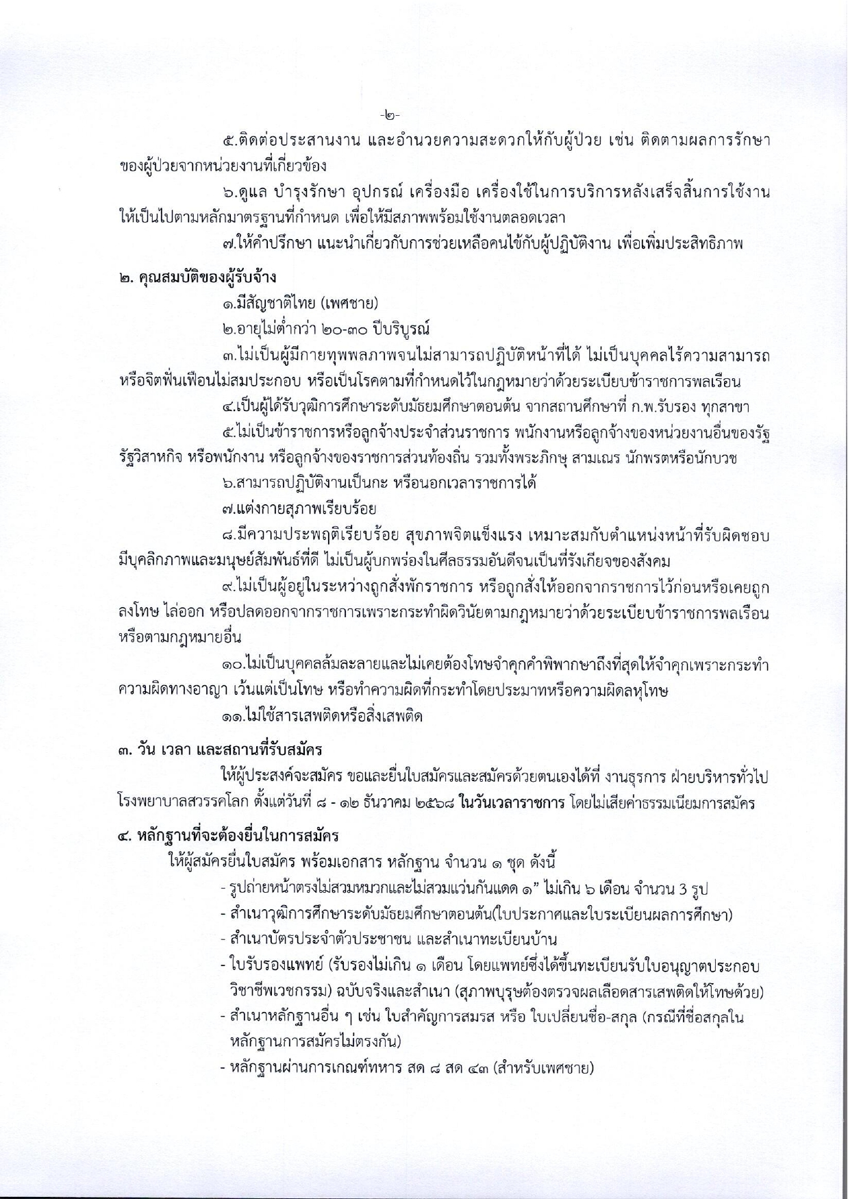 เรื่อง : ประกาศรับสมัครคัดเลือกบุคคลเพื่อจ้างเป็นลูกจ้างเหมาบริการบุคคลธรรมดา ตำแหน่ง พนักงานช่วยเหลือคนไข้