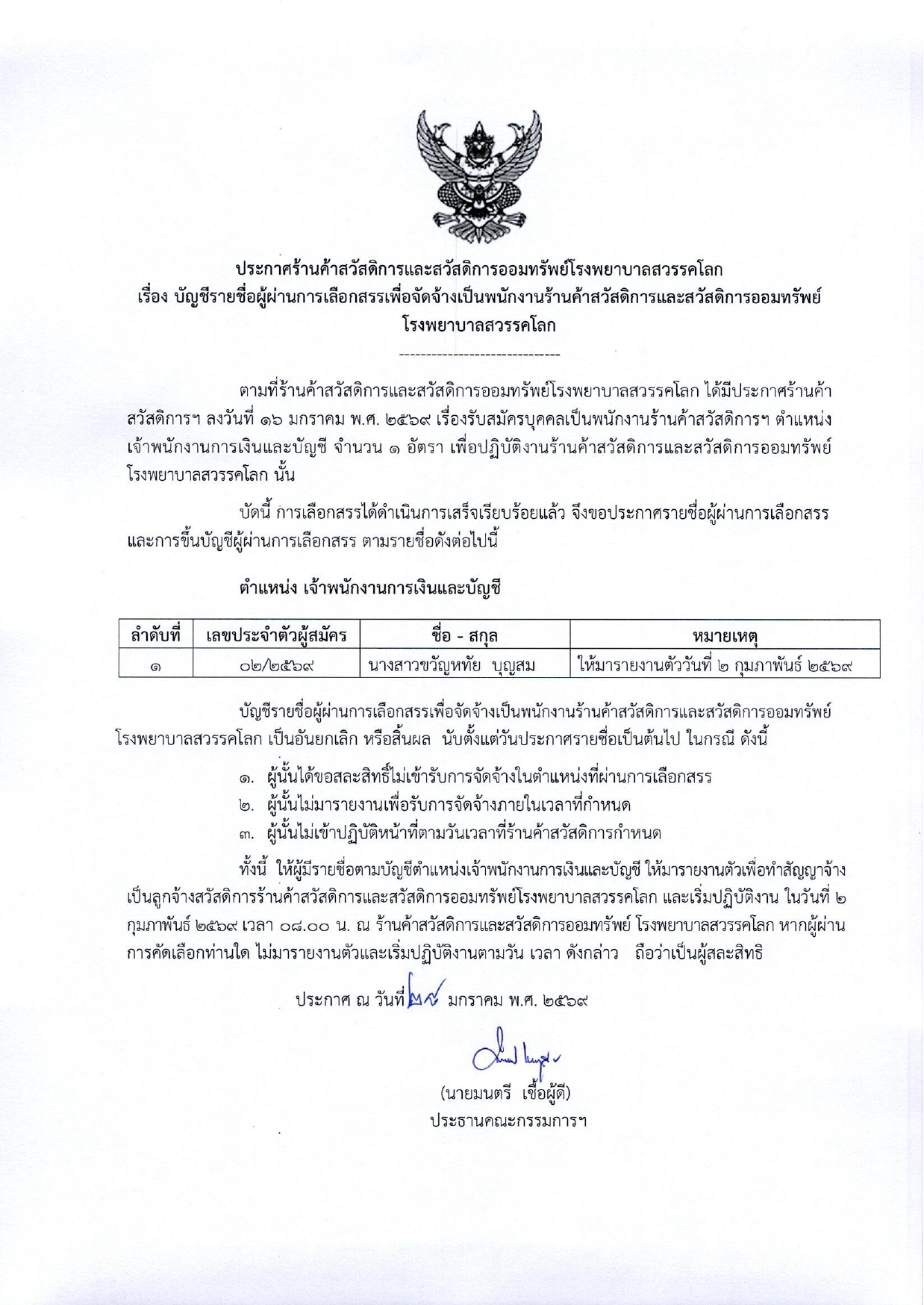 เรื่อง : ประกาศร้านค้าสวัสดิการและสวัสดิการออมทรัพย์ โรงพยาบาลสวรรคโลก เรื่อง บัญชีรายชื่อผู้ผ่านการเลือกสรรเ