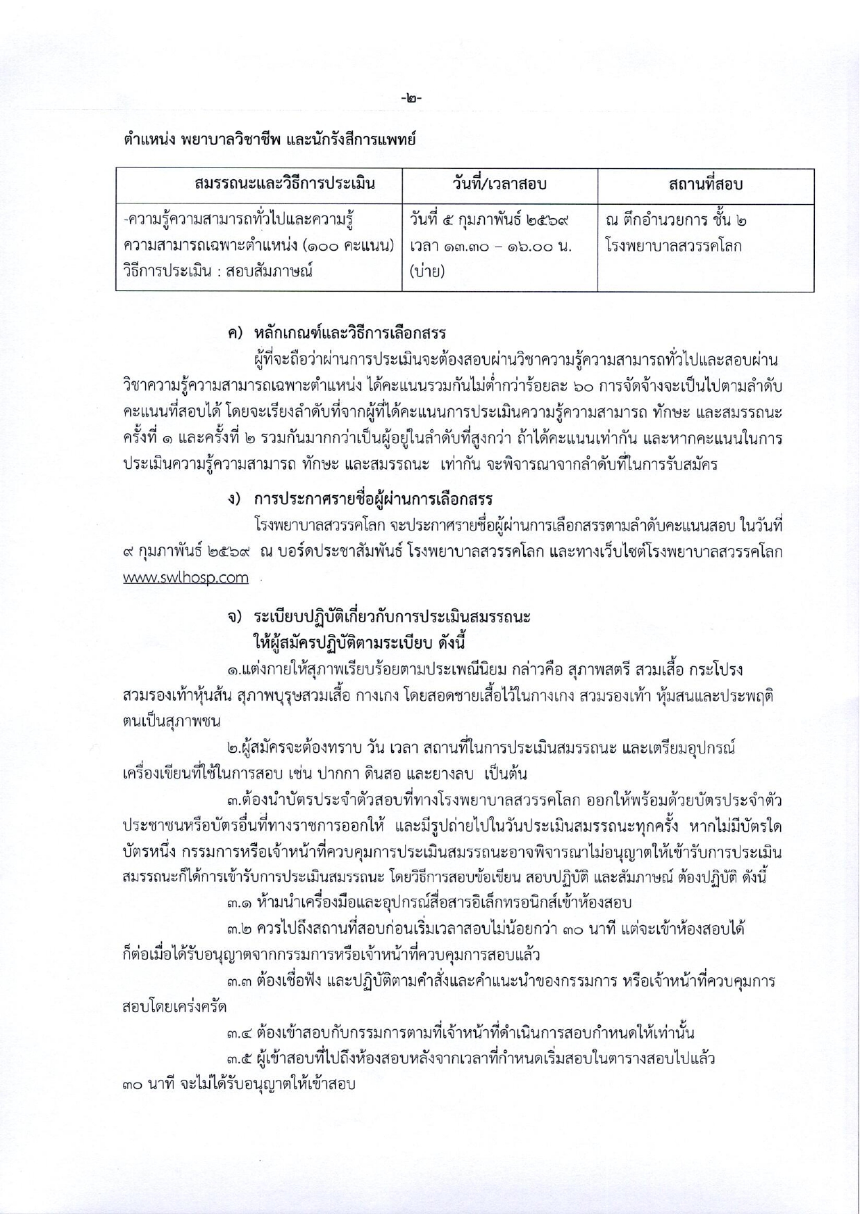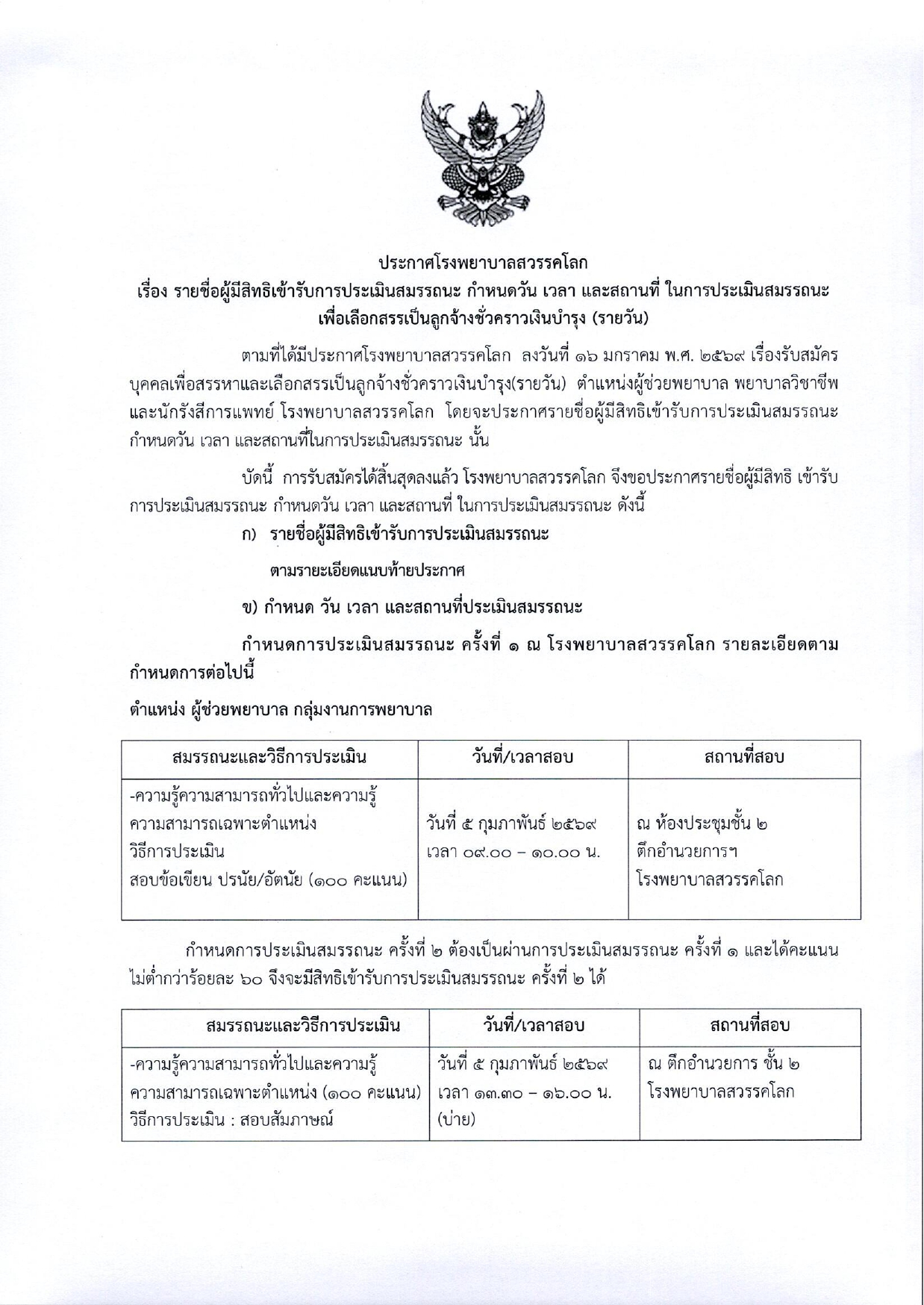 เรื่อง : ประกาศโรงพยาบาลสวรรคโลก เรื่อง รายชื่อผู้มีสิทธิ์เข้ารับการประเมินสมรรถนะ เพื่อคัดเลือกเป็น ลูกจ้างช