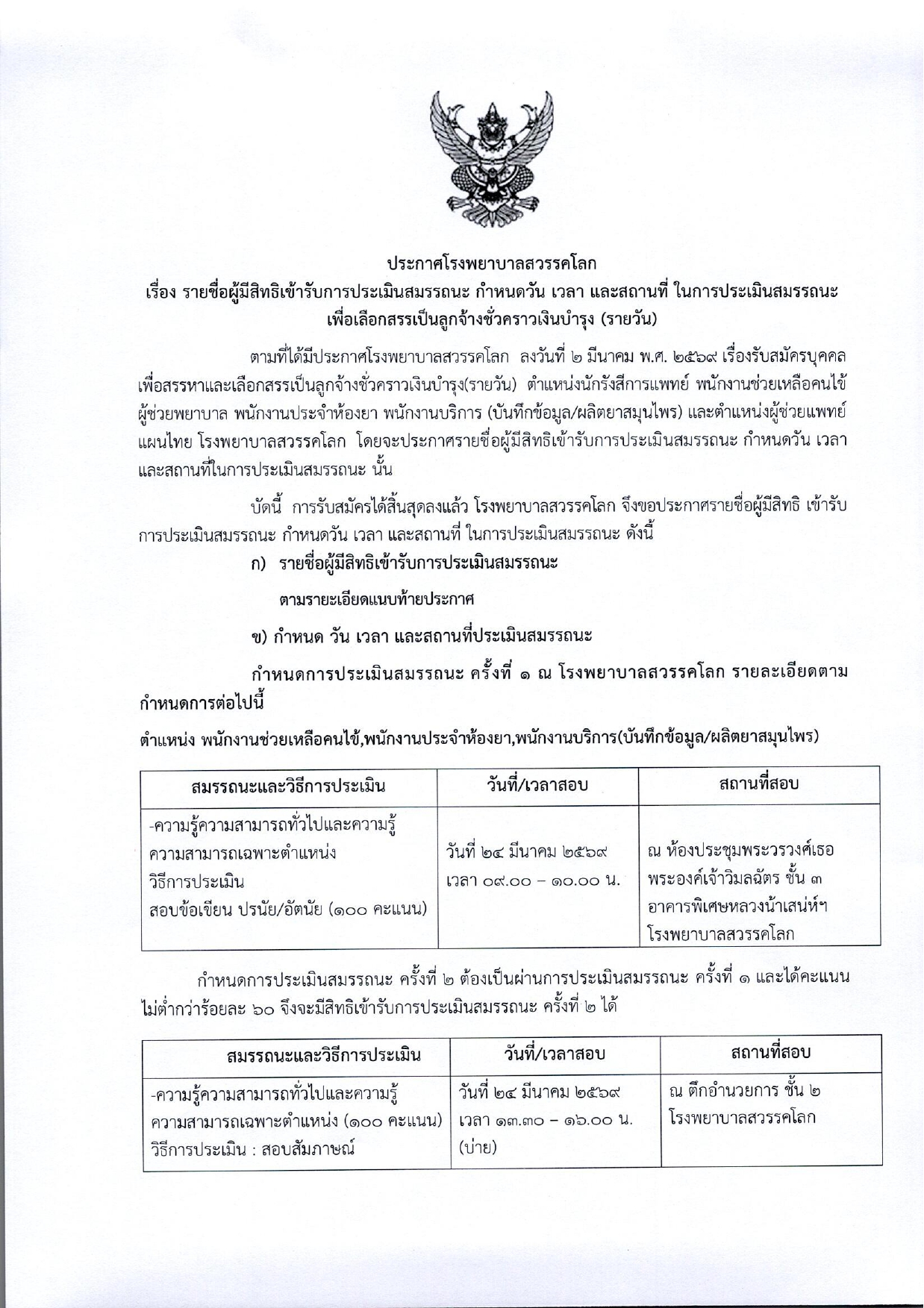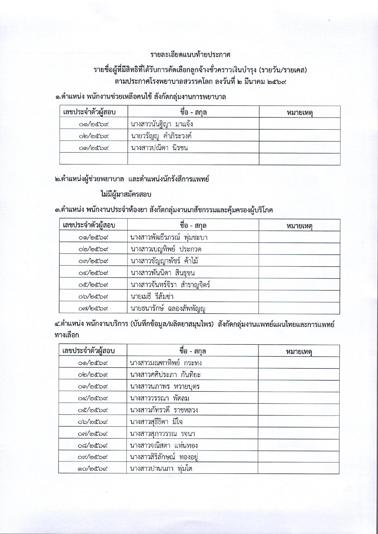 เรื่อง : รายชื่อผู้มีสิทธิ์เข้ารับการประเมินสมรรถนะ เพื่อคัดเลือกเป็นลูกจ้างชั่วคราว (รายวัน)